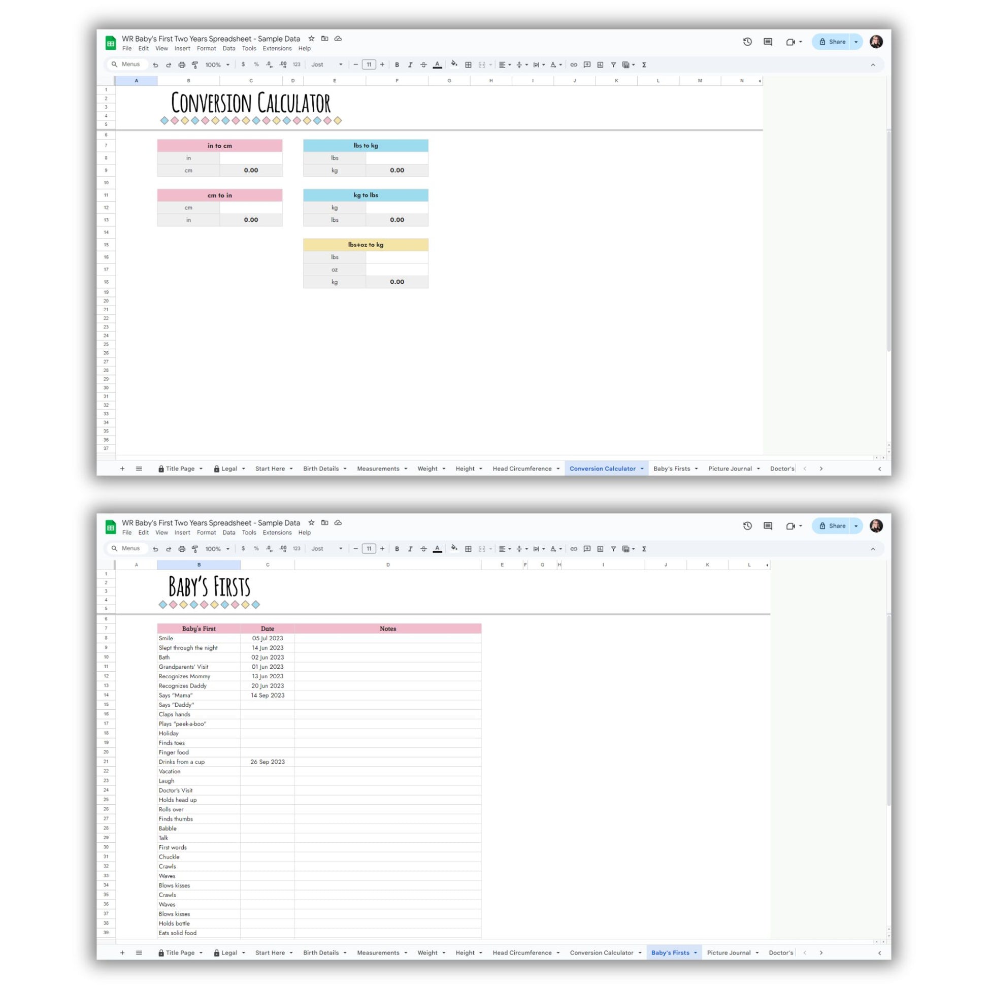 Create a lasting keepsake of your baby's most precious years and stay organized as you track every milestone, big and small. Get the Baby’s First Two Years Spreadsheet today and start cherishing every moment!