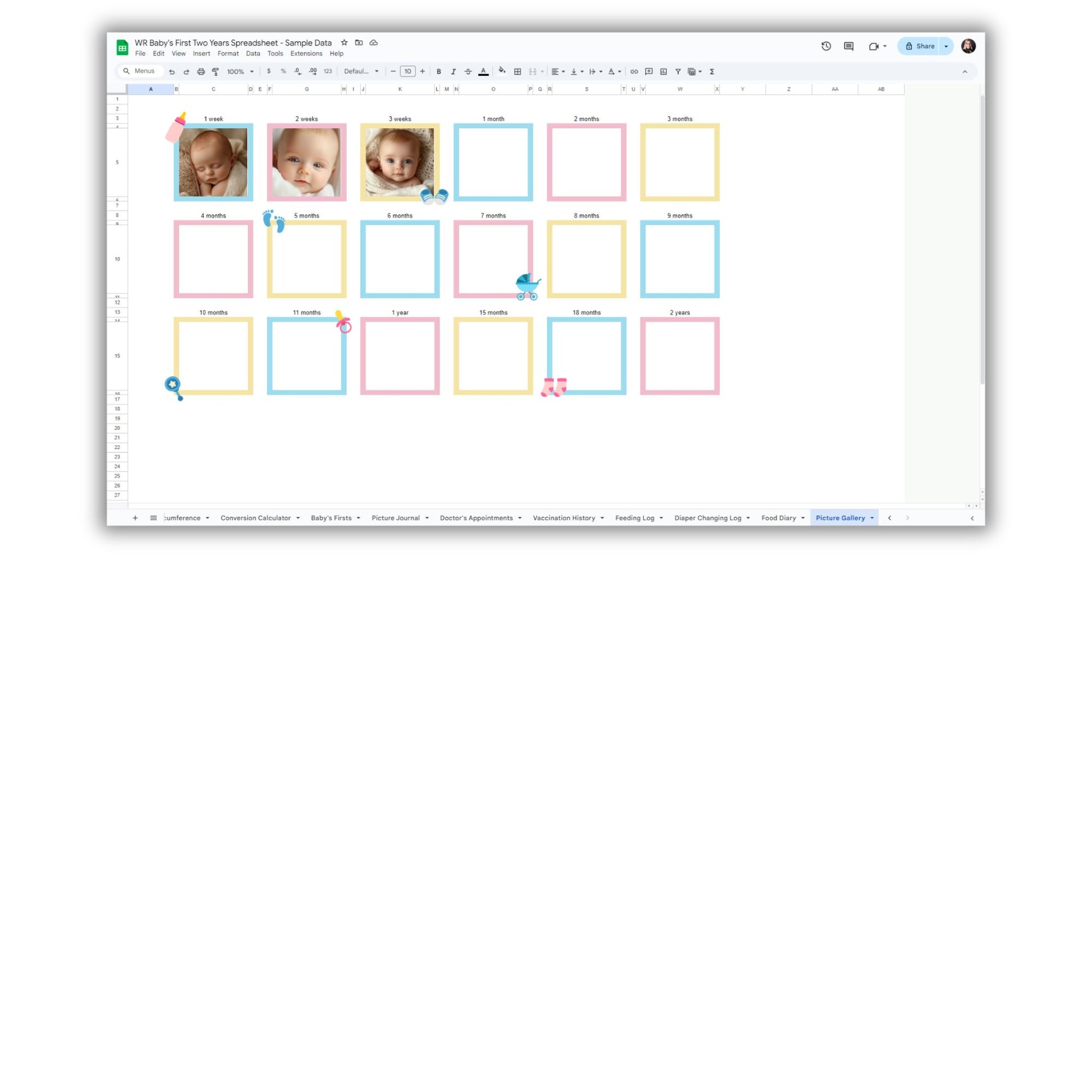 - Capture Memories: Add pictures of key moments and firsts, turning the spreadsheet into a digital scrapbook you’ll treasure forever.