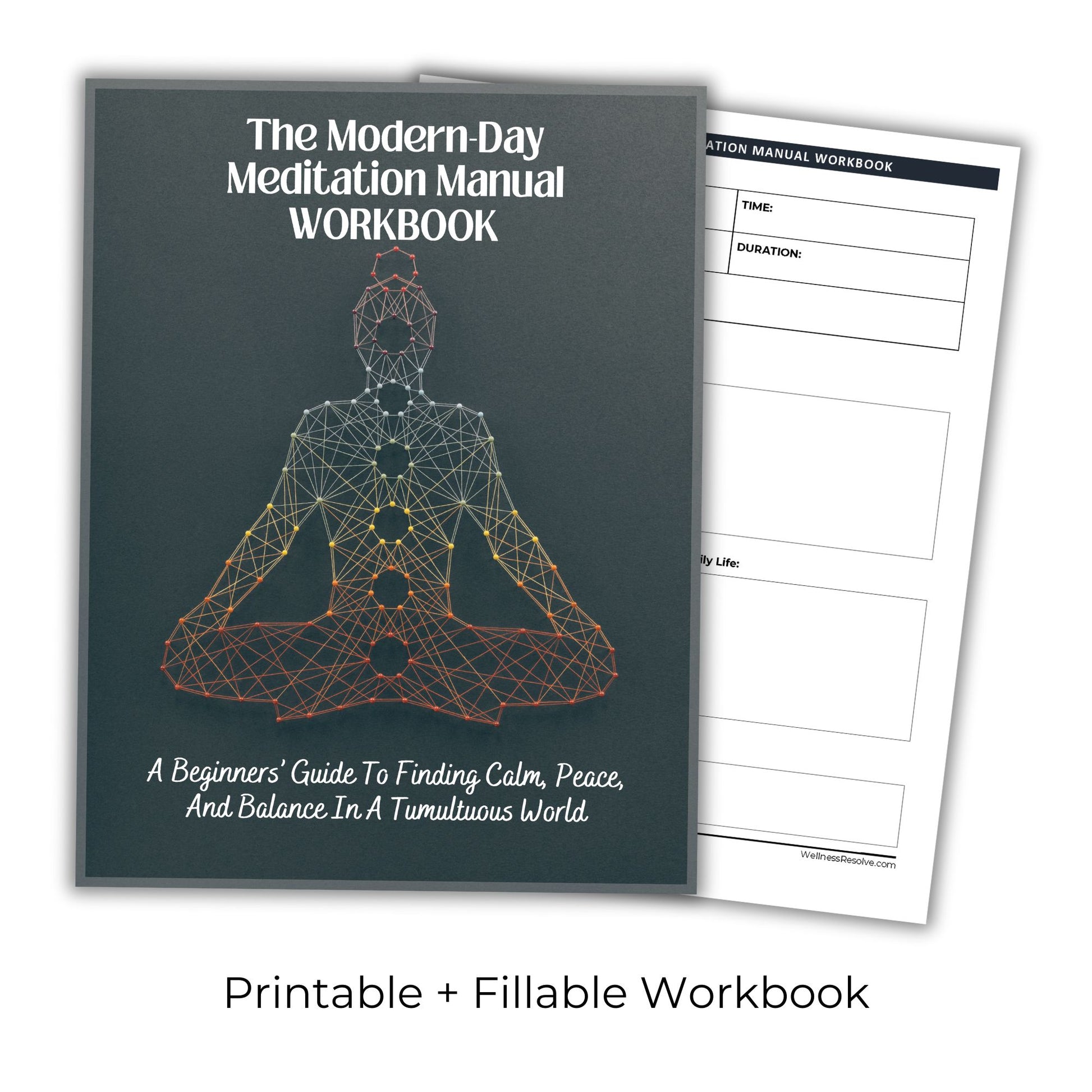 The Modern-Day Meditation Manual & Workbook that include optional audio files of the manual so you can listen on the go! It's a meditation guide for beginners that teaches you how to create peace of mind and calm in just a few minutes.