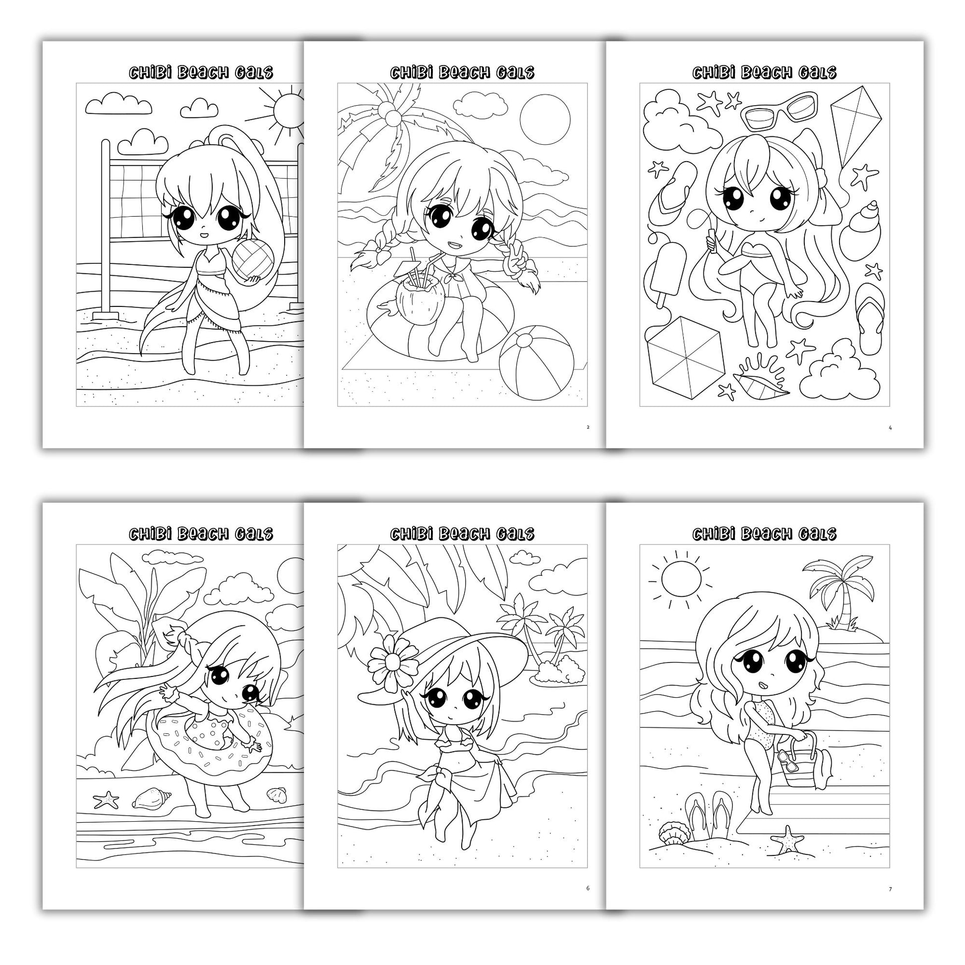 Everyone loves coloring! This printable chibi-style beach gals coloring book has coloring pages for children of all ages and comes in both Letter size and A4 size paper.