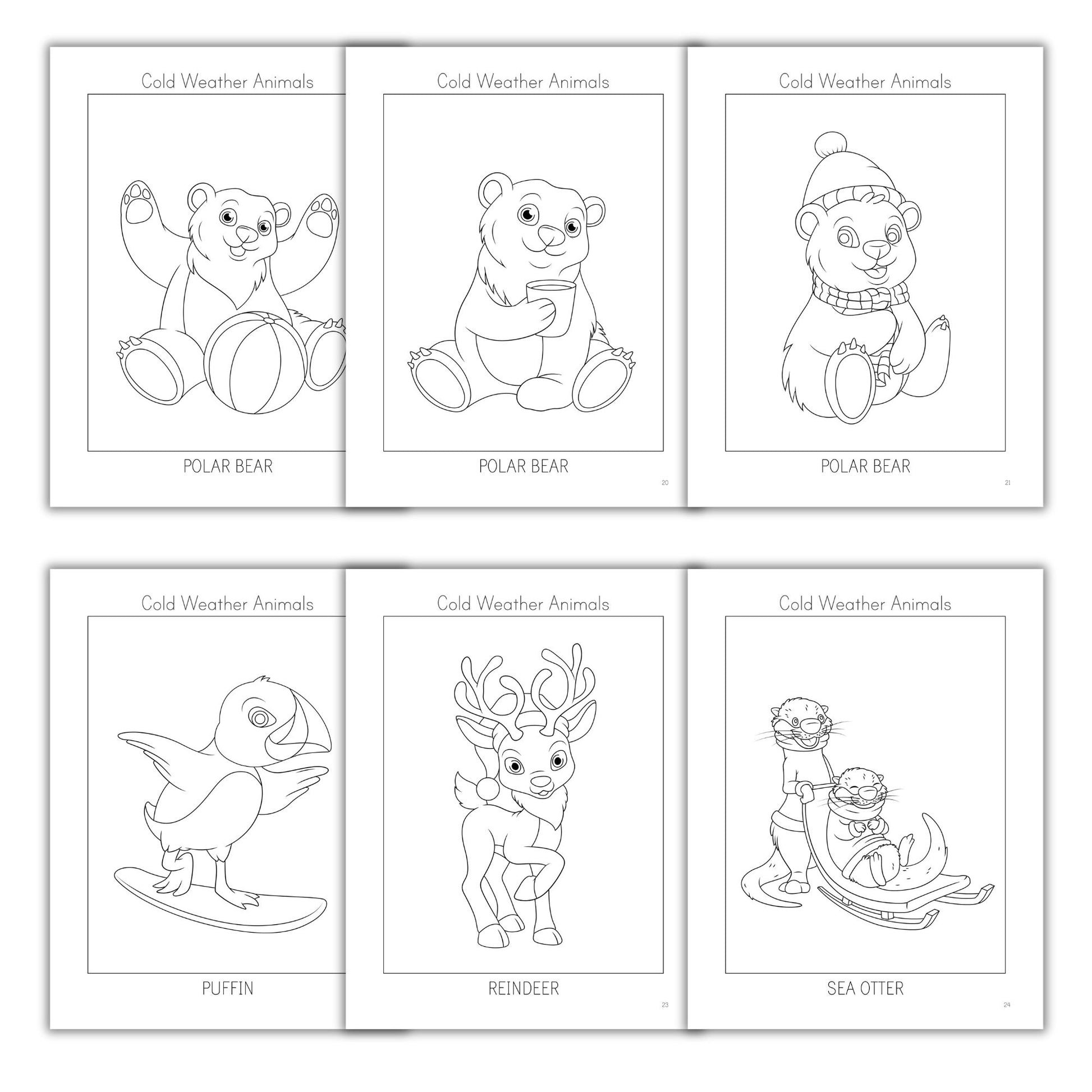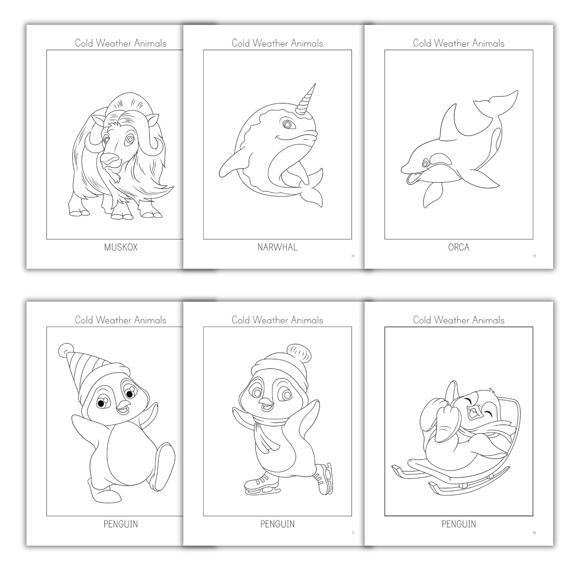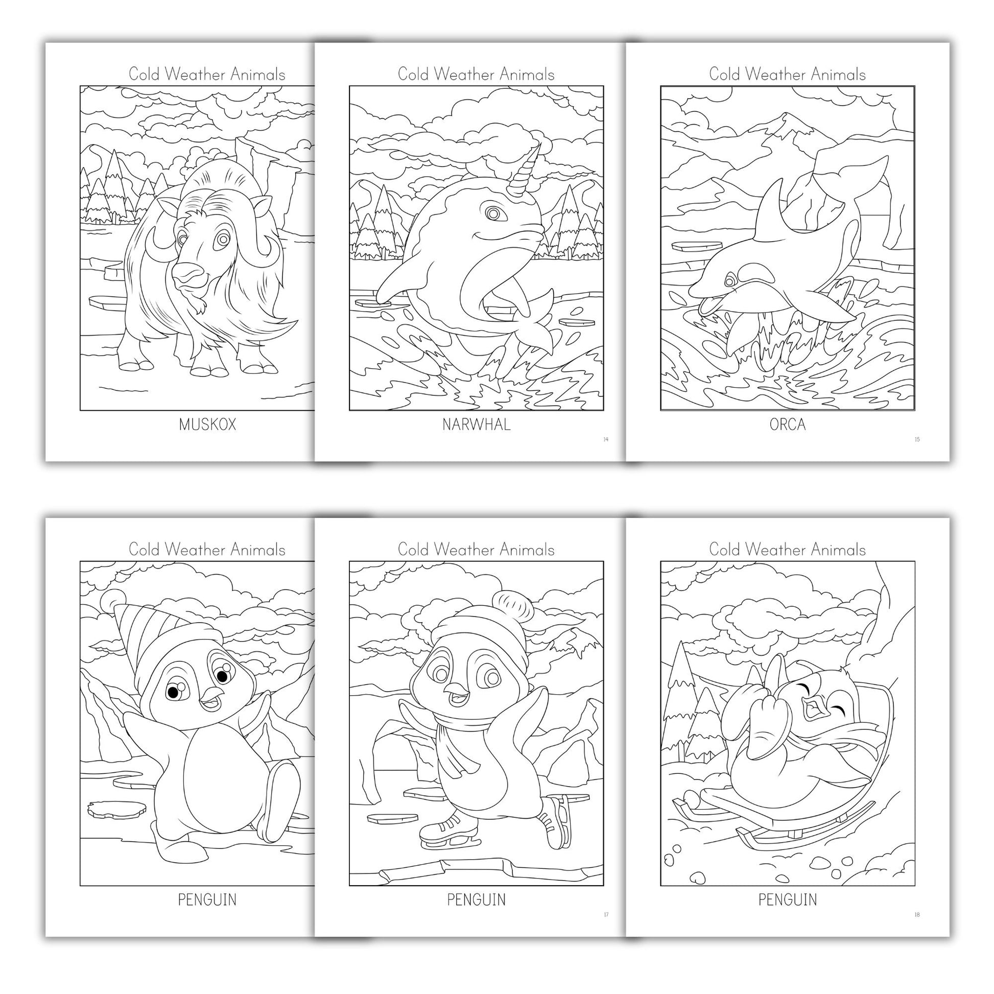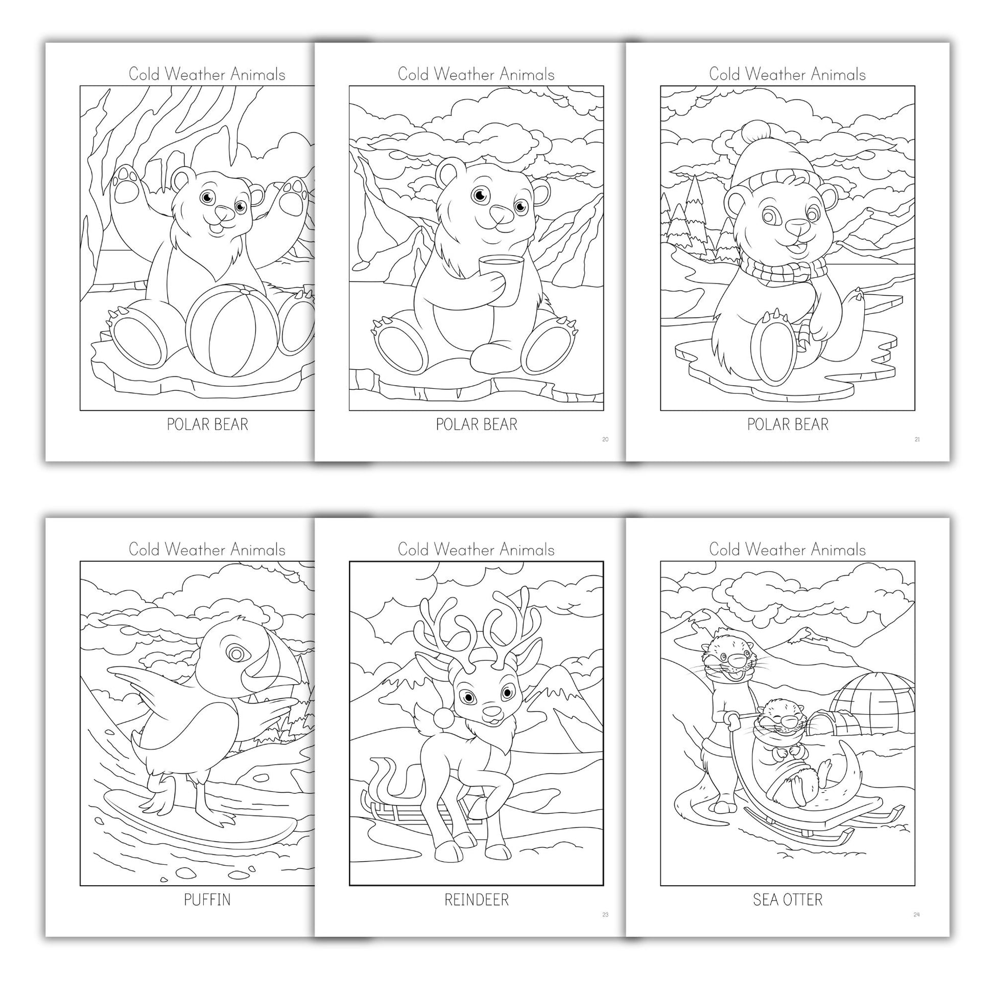 Spark your child's creativity with our Cold Weather Animals Coloring Books! Each set of printable coloring pages includes 30 sheets filled with diverse animals from the region.