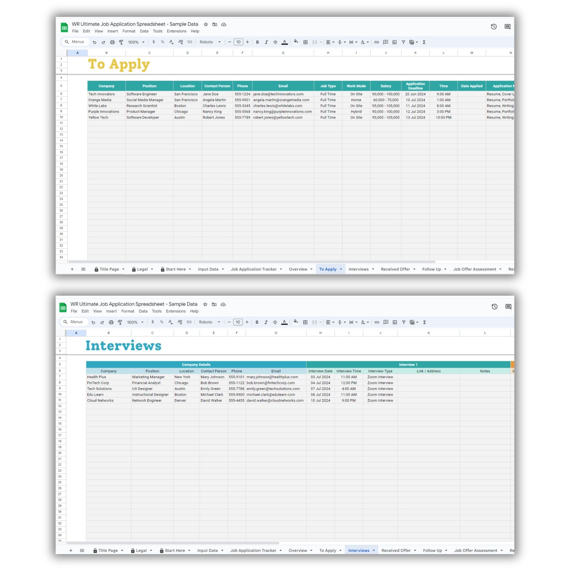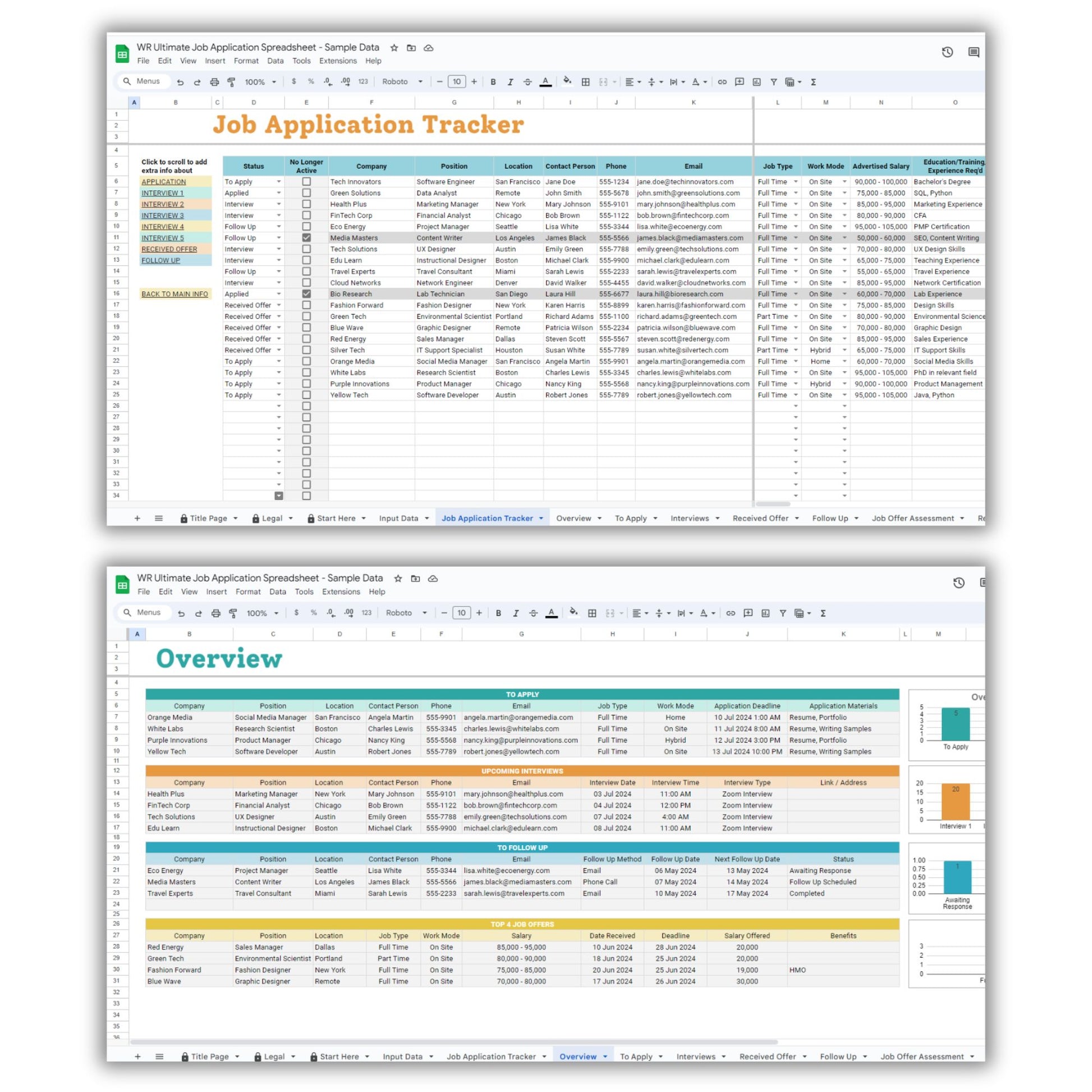 👉 Detailed Sheets: Manage job applications, interviews, offers, and follow-ups effortlessly.