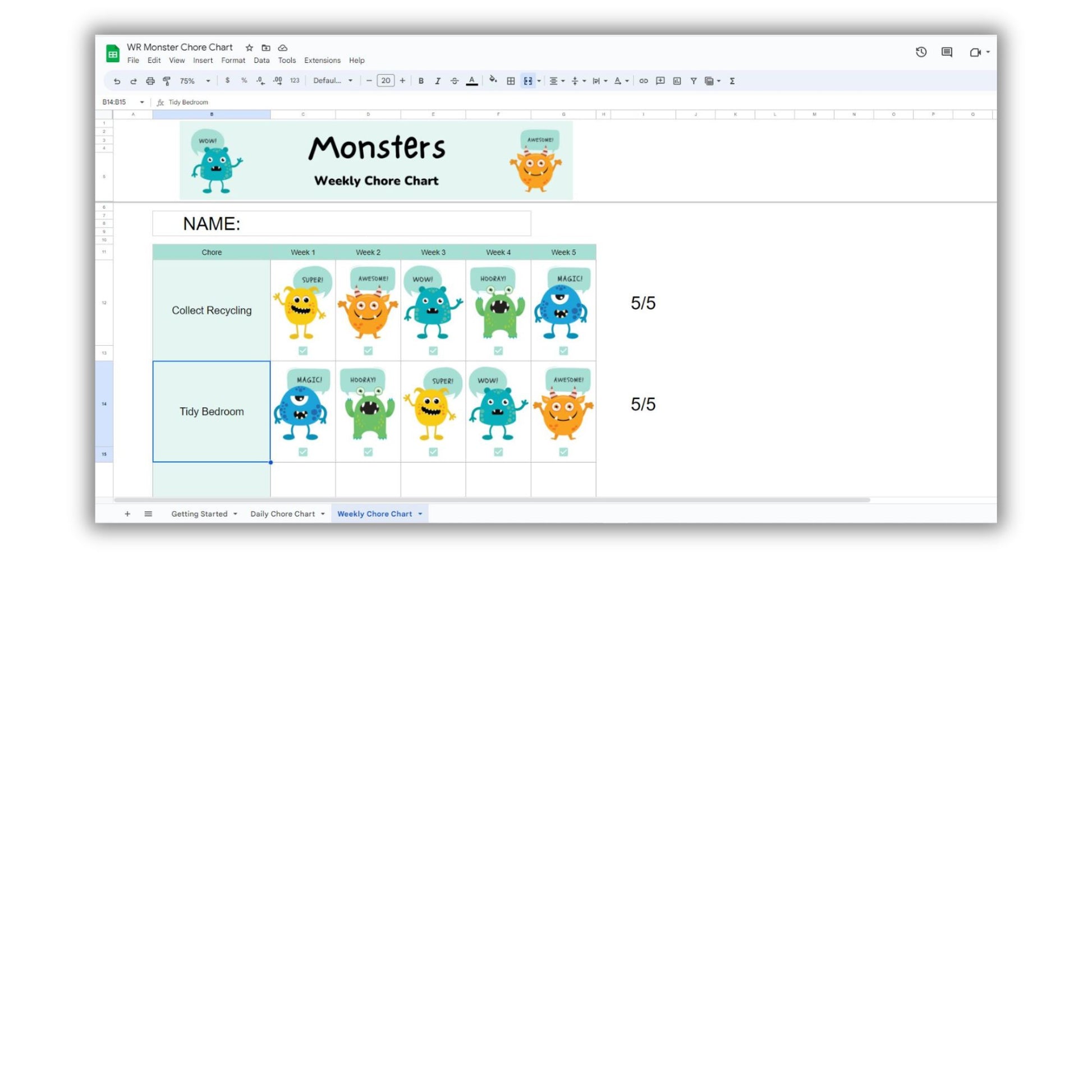 The fun monster chore and responsibility chart template is available on Google Sheets, making it easy to access and share across devices. With our online chore chart, you can say goodbye to traditional paper charts that can get lost or damaged easily.