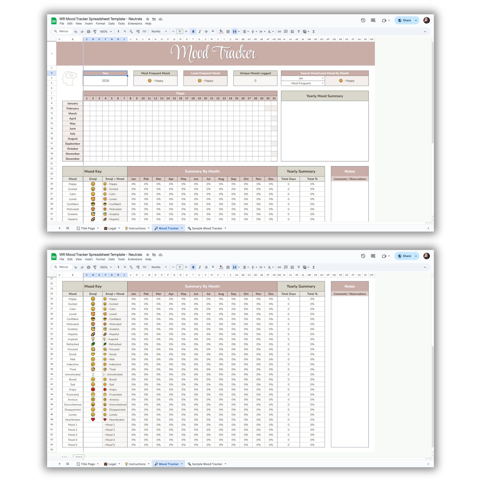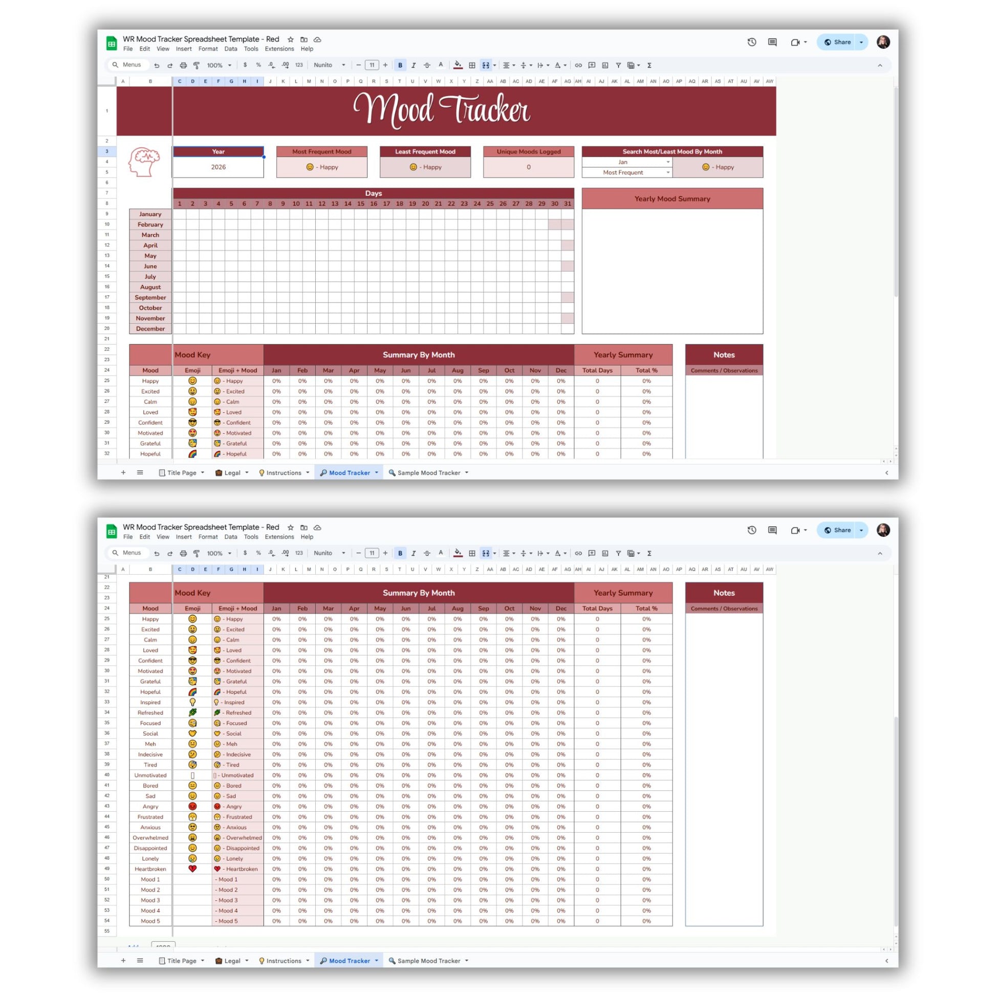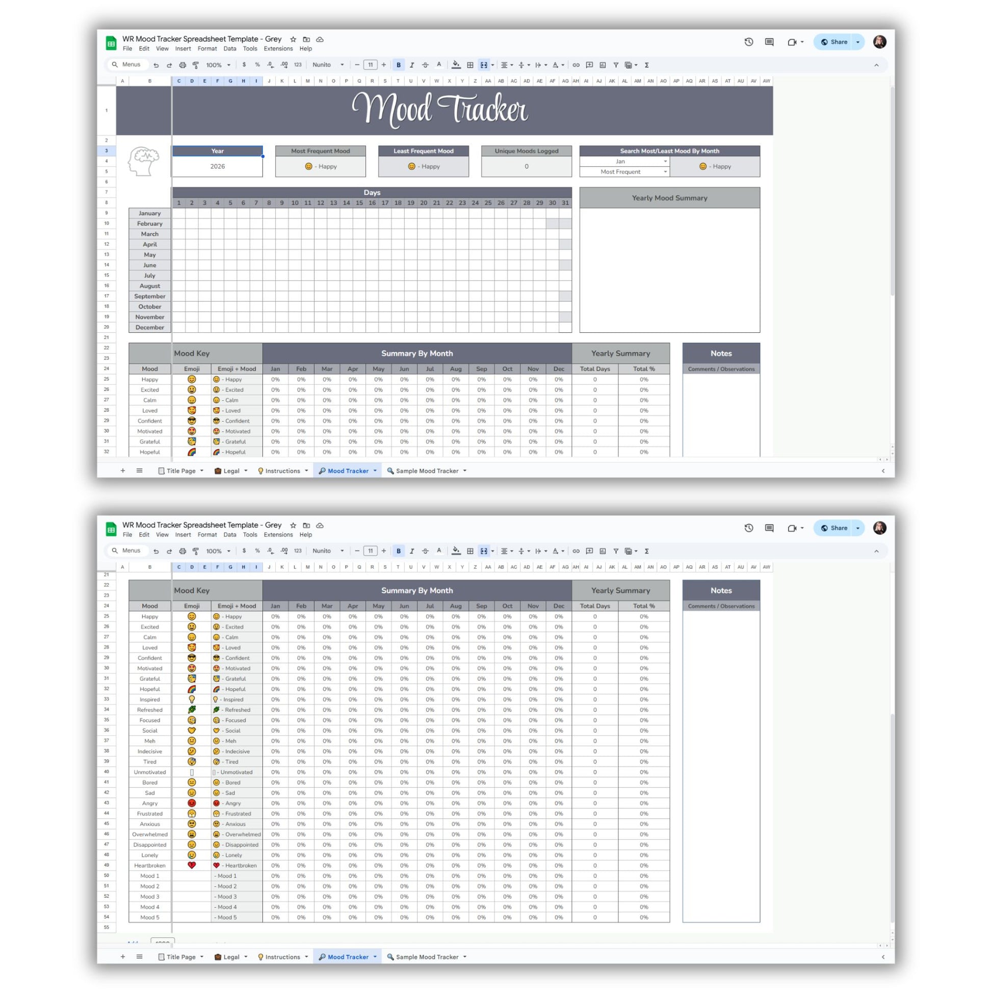Mood Tracker Spreadsheet Template