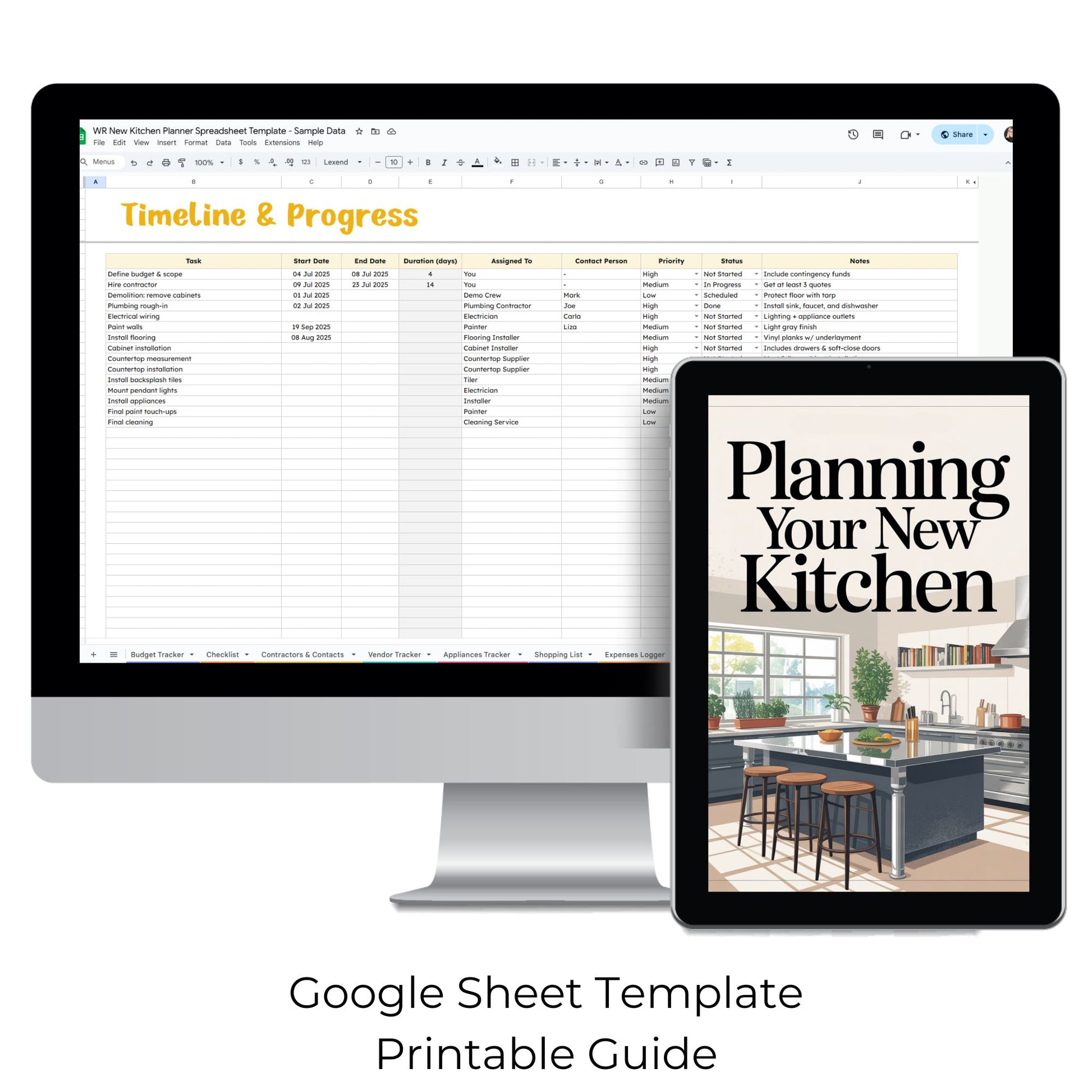 📌 Timeline & Progress Sheet – Map out your kitchen remodel project timeline and track completion in real time.
