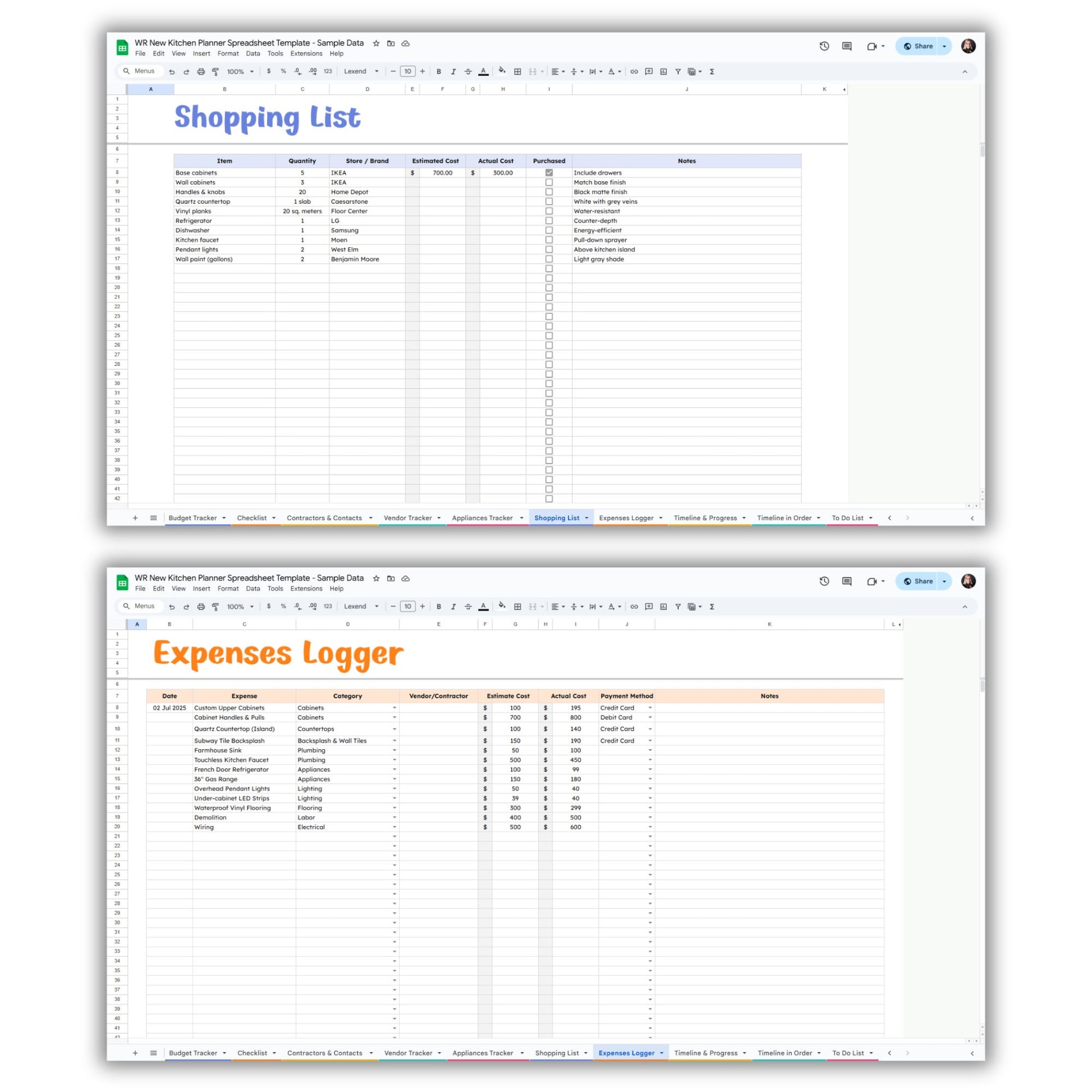 ✅ Budget Made Simple – Track planned vs. actual costs with the built-in kitchen renovation budget spreadsheet, expense log, and cost breakdown sheets.