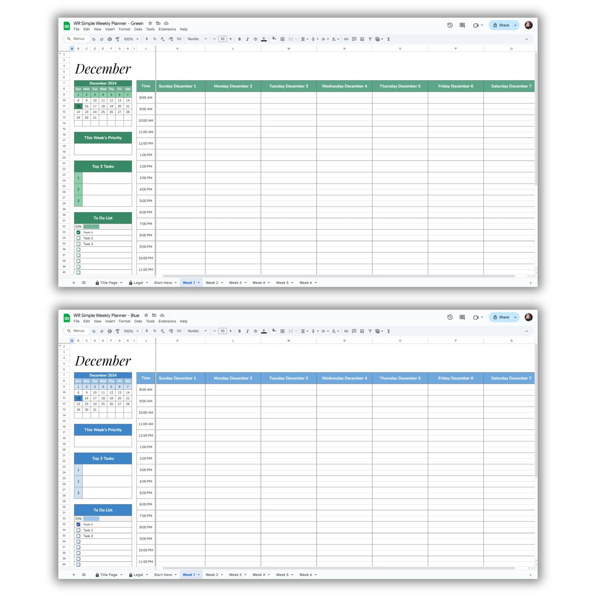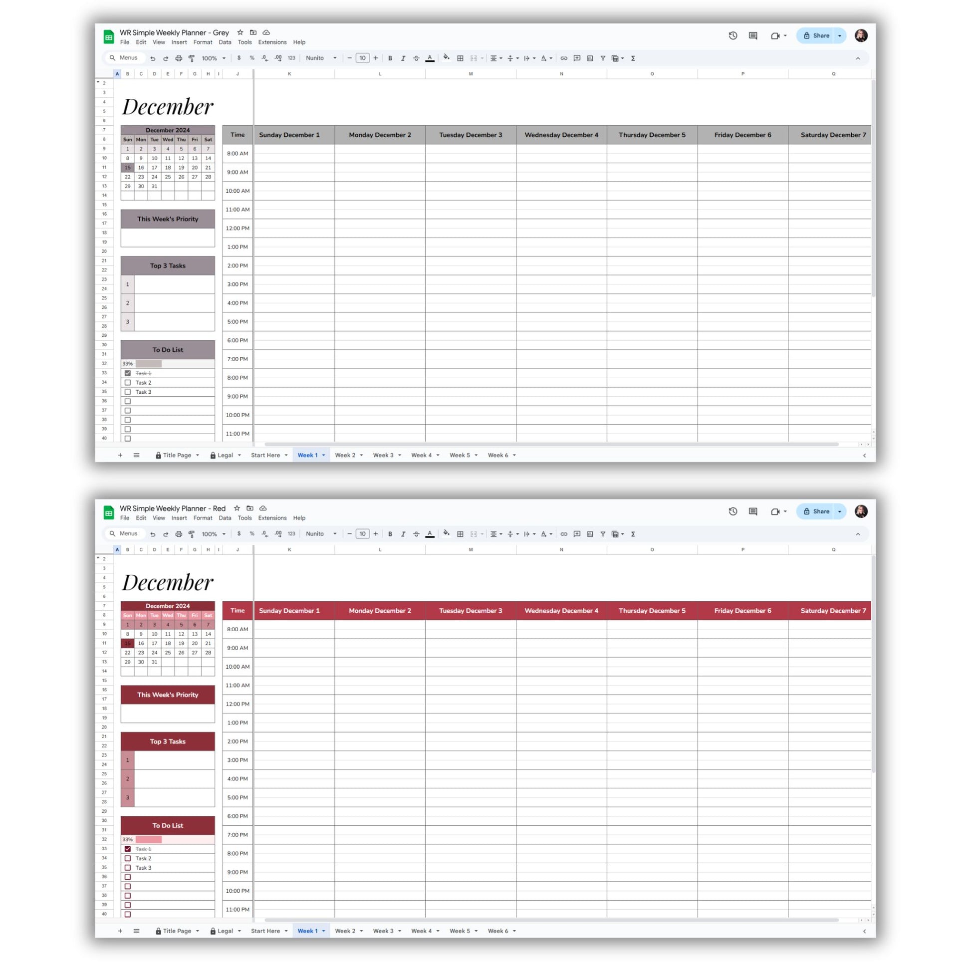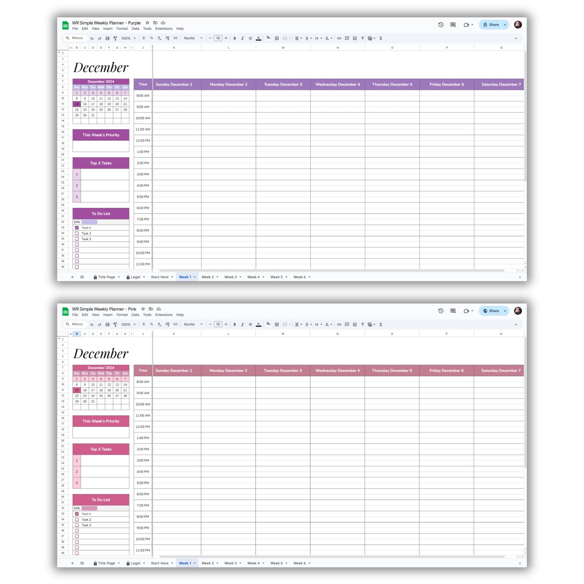 Get your Weekly Planner Spreadsheet Template today and turn your goals into reality!